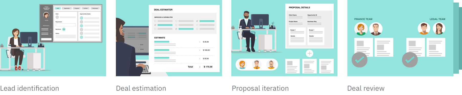 The sales cycle inclusive of initial engagement with customers showcasing core business offerings that generate leads for which proposals are created.