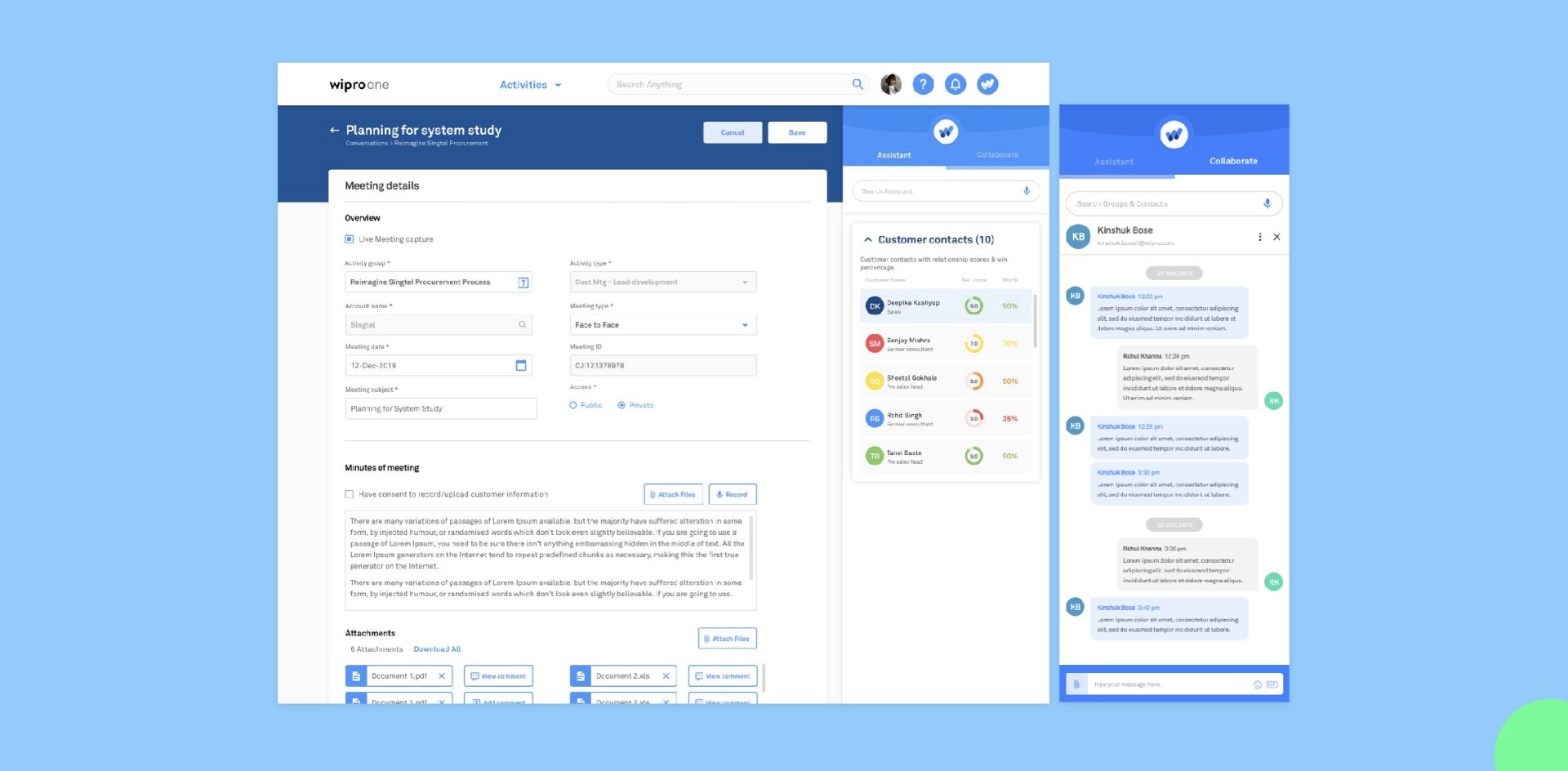 Integrated a learning model-based assistant that provided contextual insights as well as help & support to make informed decisions. This also doubles as a collaboration tool allowing users to internally message other employees.
